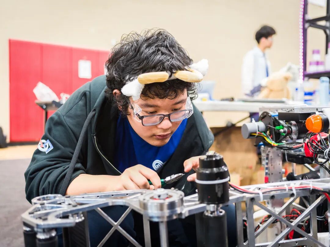 其次是项目中有着超高的学生参与度!从拿到课题开始,整个过程中很少有指导教师的参与,相反是全体学生的高度参与。经常可以看到高二队员们一边做着和机器人有关的工作,一边还捧着作业在工作室内见缝插针赶作业。为了完善作品,大家经常会聚集在一起不断讨论、完善,然后各司其职,甚至经常会加班到深夜。真正的探索求知,真正的全身心投入,这便是FRC的魅力!